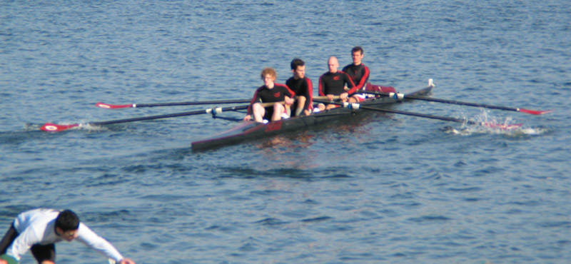 Men's Lightweight Four (M4+), University of Chicago Crew. Karl La Favre stroke. Leaving the dock.