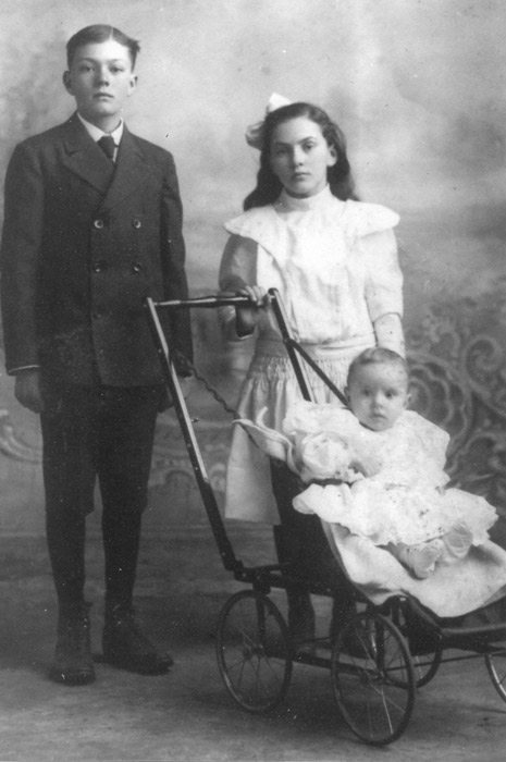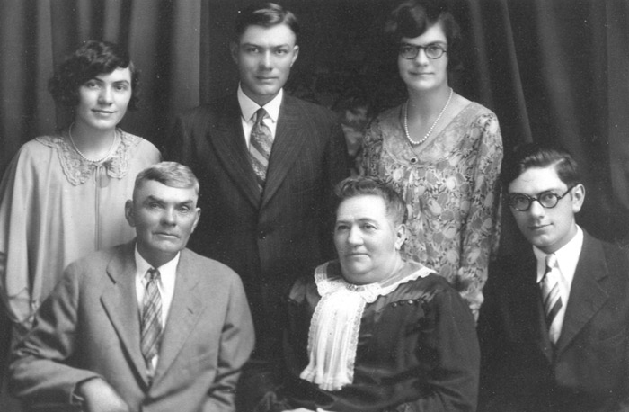 Back row (l to r): Grace (born 11-8-1897), Floyd (born 11-28-1893) and Verna (Mildred) (born 3-21-1910), front row (l to r) John O. (born 4-26-1865), Mary Ellen (Mollie) (born 11-18-1869) and John (Ivan) (born 10-5-1906). Mollie died in 1960 and John O. died in 1931.