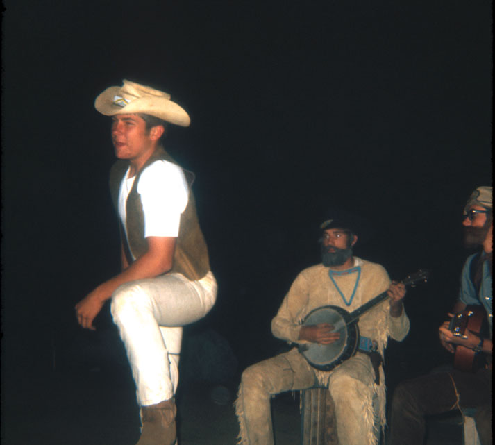 Camp staff at campfire. In front is Tim _____?, background-left is John Courter, on far right is Daryl Smetana.