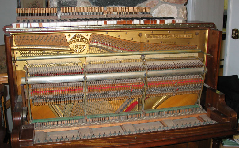 This piano was a gift from my great great grandfather to his daughter, Stella Wing Martinelli, on the occasion of her marriage to Clarence Harrison Mowry in 1899. It has been in my family since that time. When I was young, I had a few lessons on this piano, but never kept it up. My mother, Barbara La Favre, granddaughter of Stella, did play this piano on occasion.
