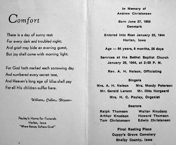 Funeral card for Andrew.