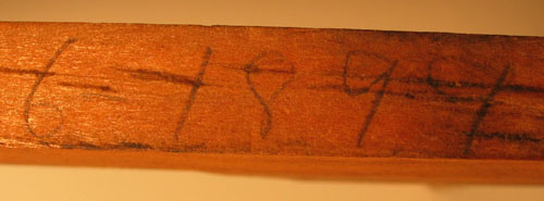 Piano serial number is 46838. A list of serial numbers found on the Internet lists serial number 43000 manufactured in 1895 and serial number 47000 manufactured in 1900. The bottom key of the keyboard (key 1) appears to have the date of 6 - 1899 as illustrated in the photo below.
