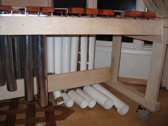 Photo below shows model of bass resonators for natural bars (C2 - A2). Model resonators were fabricated with poster board.