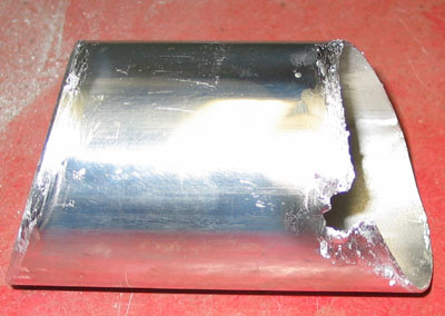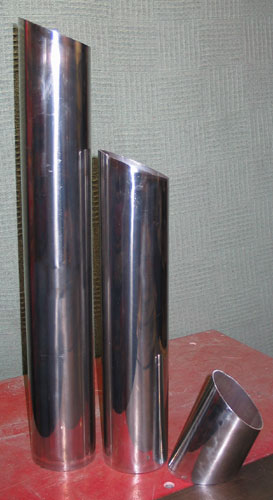 Three sections of D2 resonator, mating ends cut at 22.5 degrees. These tubes have been polished, which is done prior to brazing to eliminate the difficulty of working with the buffer on an assembled resonator.